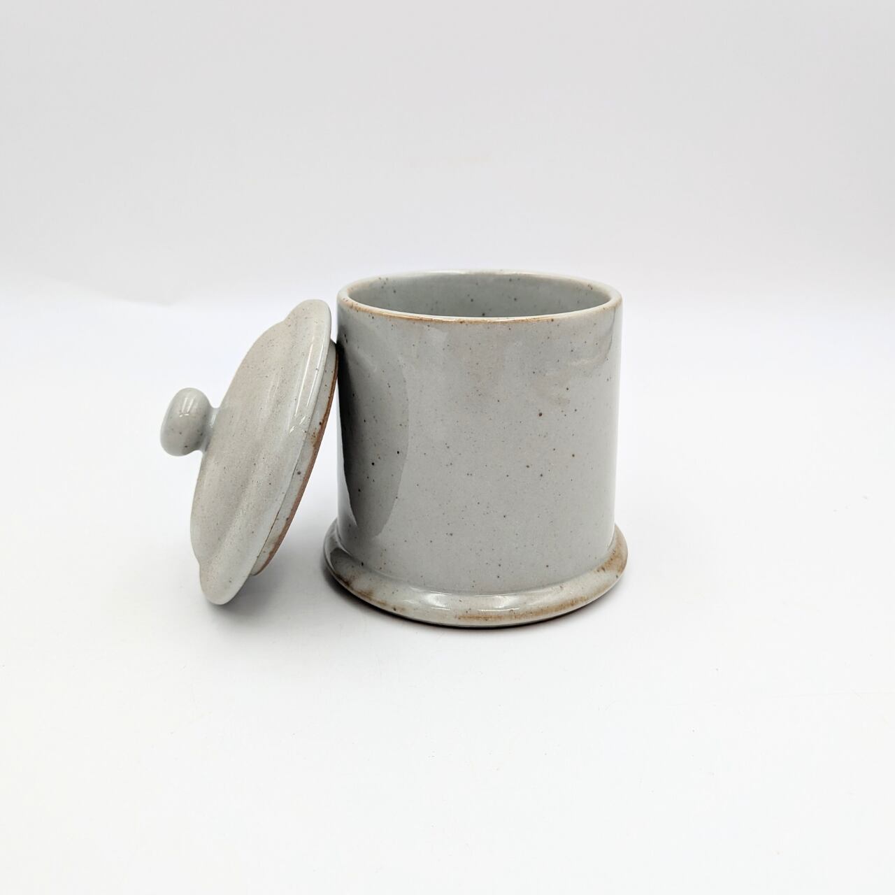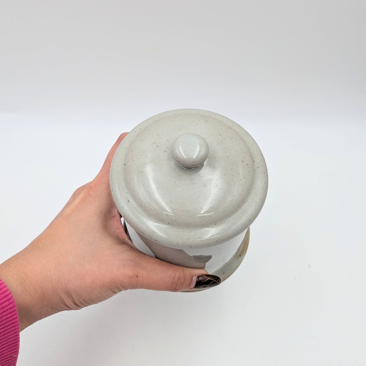 ほんのりとした粉引き調の表情がナチュラルな雰囲気を演出し、和洋どちらの空間にもなじむデザイン。コーヒー豆や茶葉、砂糖、小物入れとしても使いやすいサイズ感です。ふた付きで中身をやさしく守り、見せる収納としても活躍します。