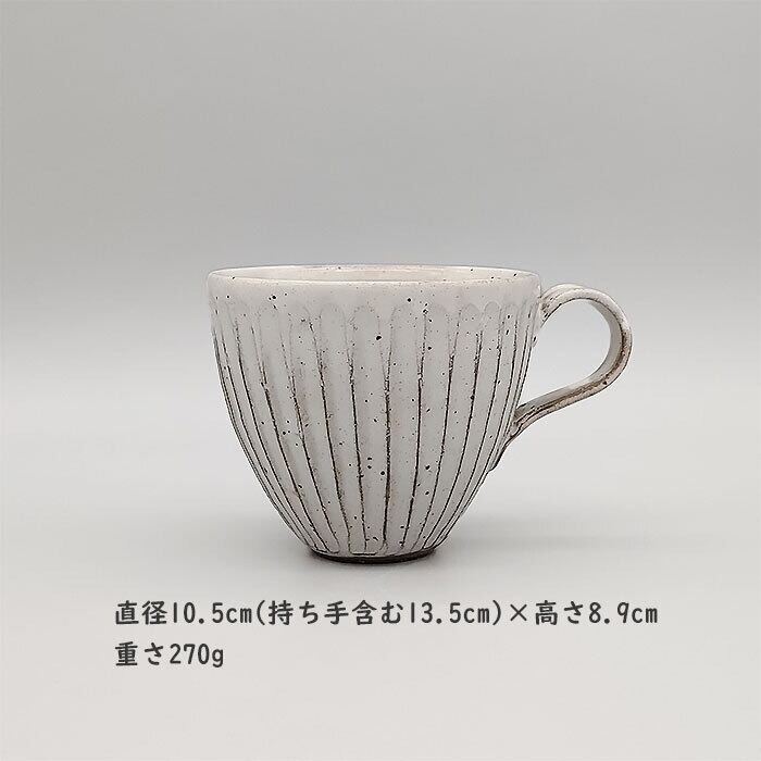 味がある粉引きの色目、ソギ目の技法がマグをより引き立たせます。