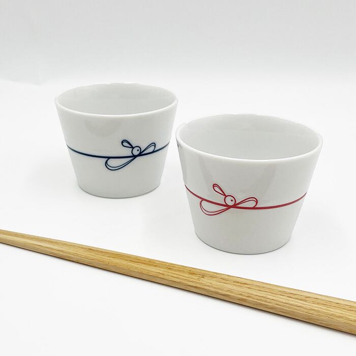 夫婦小鉢 そば猪口は、夫婦ペアで使用できるおしゃれな鉢です。白ベースに赤と青のラインのシンプルなデザインが、食卓を華やかに演出します。小鉢としてだけでなく、そば猪口としても使用できるので、一緒においしいおそばを楽しむこともできます。